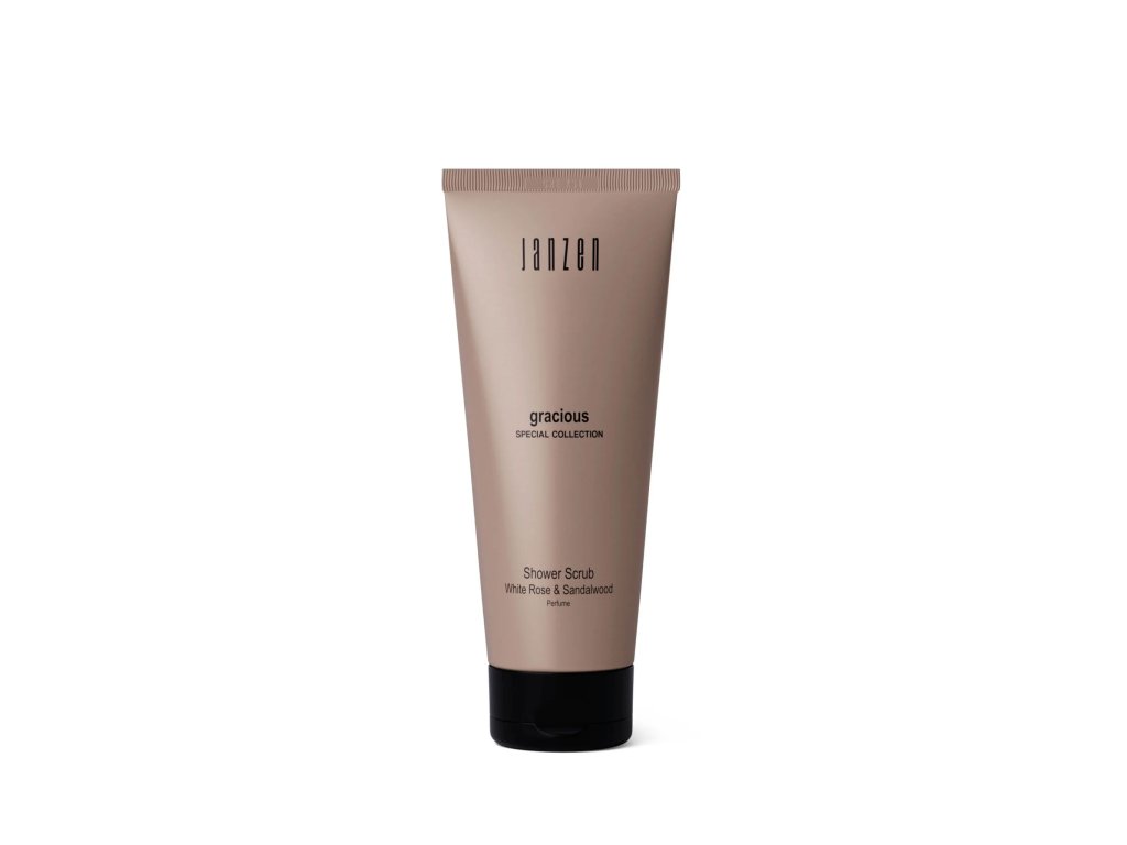 Luxusní tělový peeling JANZEN Gracious šetrně odstraňuje odumřelé buňky, zjemňuje pokožku a zanechává ji nádherně provoněnou elegantní vůní s tóny jasmínu a bílého pižma. Dopřej si péči jako ze spa v pohodlí domova.