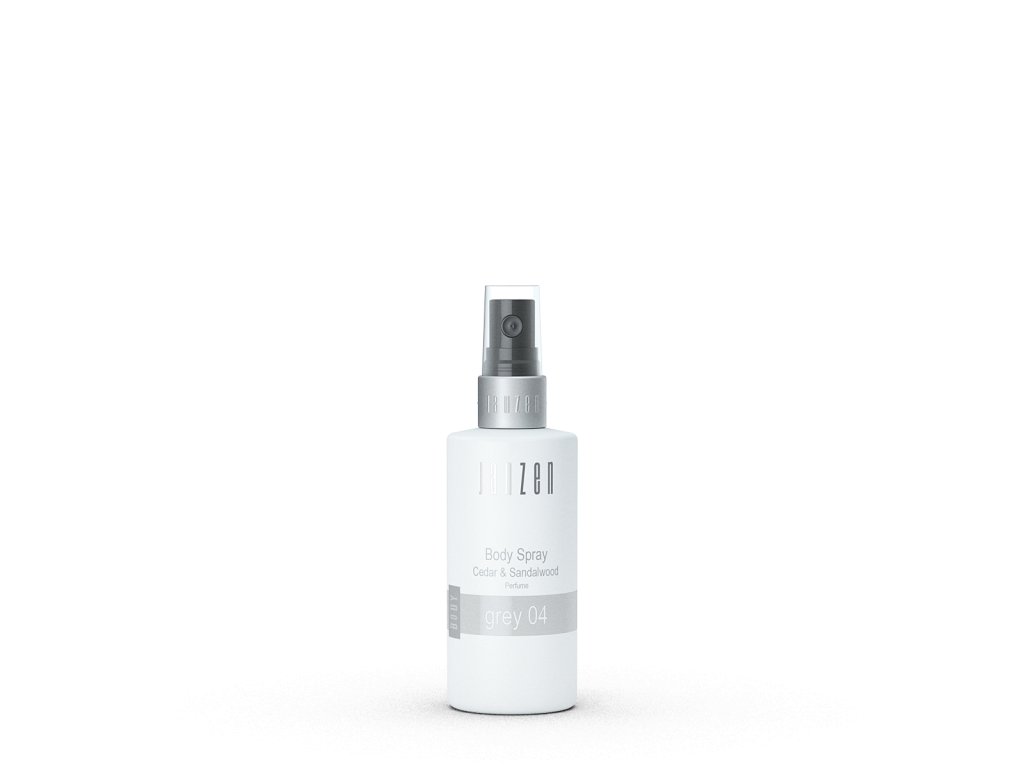 Tělový sprej je přítel každého, který se hodí kdykoli během dne. Perfektní jako tečka po sprše nebo osvěžení po náročném sportovním sezení. Vzhledem ke kvalitní parfemaci se tělový sprej hodí i jako domácí parfém. Na vodní bázi, takže vhodný pro citlivou pokožku. Svěží jako nedotčený les, čistý jako horské jezero. Grey 04 je lehká vůně pro sebevědomého muže nebo ženu. Svérázné a cool, elegantní a nadčasové. Zemitý parfém s pryskyřicí a dřevěnými štěpky jako základem, lemovaný atlaským cedrem a balzamikovými tóny australského santalového dřeva.
