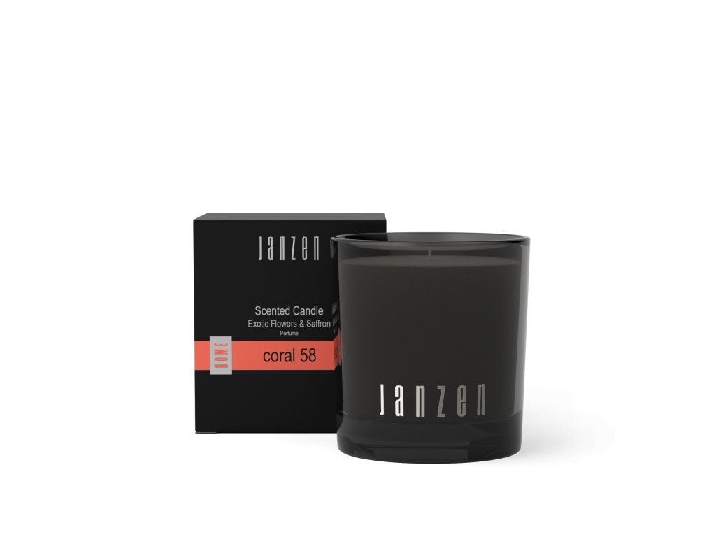 Speciální sójový vosk uvolňuje parfém pomalu. Coral 58 se šafránem a jantarem v základu symbolizuje rozmanitost. Na jedné straně silné a kořenité, na druhé jemné a smyslné. Živé manželství mezi sladkým a (trochu) hořkým.