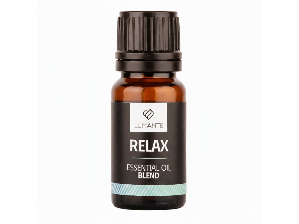 Lumante Esenciální olej Relax 10 ml je jemná směs levandule, vanilky, ylang ylangu, pomeranče a pelargonie. Vytváří uklidňující, harmonickou a relaxační atmosféru. Ideální do difuzéru, aromalampy i do masážních směsí (používá se zředěný).
