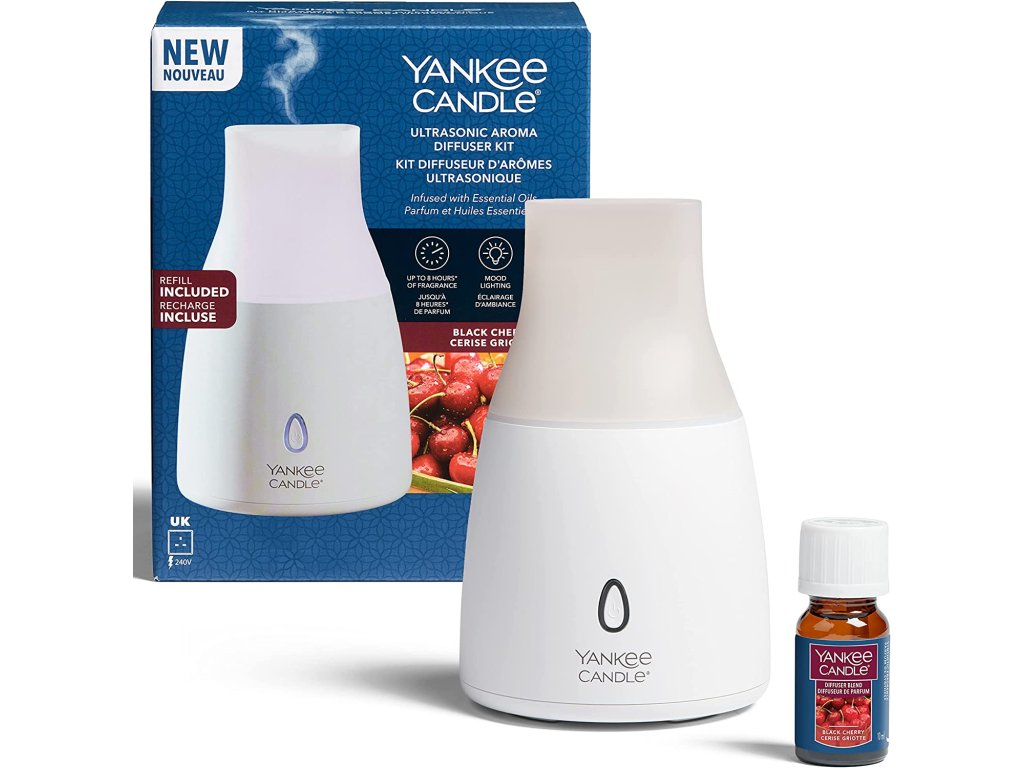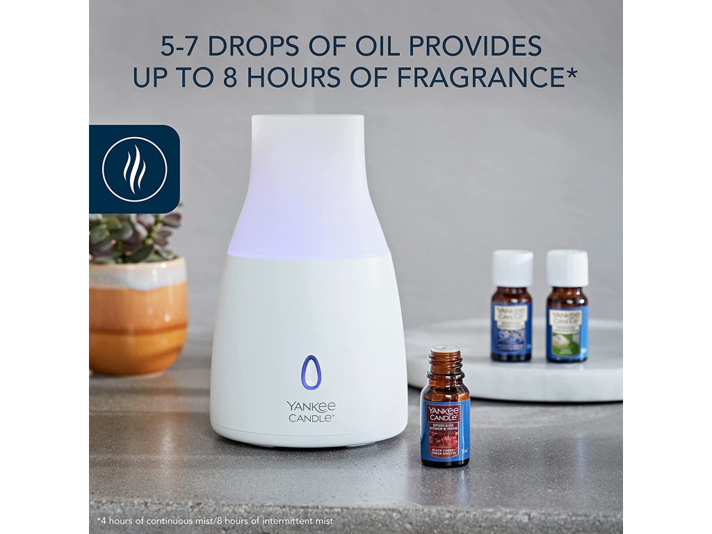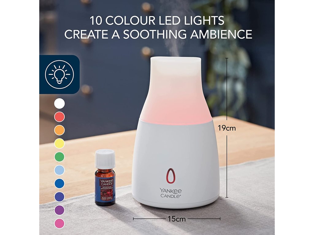 Ultrasonic Aroma Difuzér Yankee Candle je ideální pro navození správné atmosféry! Má nastavitelnou intenzitu světla, mlhy a vůně. Pouhých pět až sedm kapek oleje a provoníte místnost až na 8 hodin. Pro uvolněnější atmosféru disponuje difuzér 10 barevnými LED světly. Barvy se buď střídají nebo si můžete zvolit preferovanou barvu a vytvořit tak dokonalou atmosféru. Funkce automatického vypnutí vám umožní relaxovat bez obav. Jedná se o bezpečný způsob uvolnění vůně - nic se nemusí zapalovat. Součástí balení je i olej Black Cherry. Náhradní náplně prodáváme v 5 dalších vůních, a to našich bestsellerech: šťavnaté Black Cherry, jemné květinové Pink Sands, čisté Clean Cotton, osvěžující Lemon Lavender a romantické Midnight Jasmine. Náplně mají obsah 10 ml.