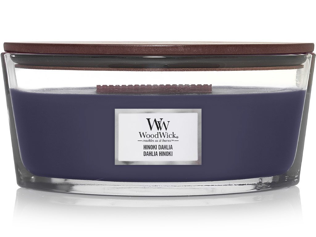 WoodWick vonná svíčka s dřevěným knotem Elipsa Hinoki Dahlia 453 g
