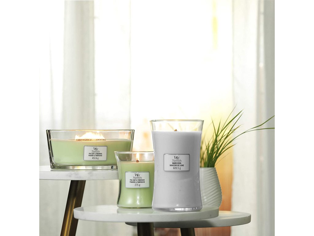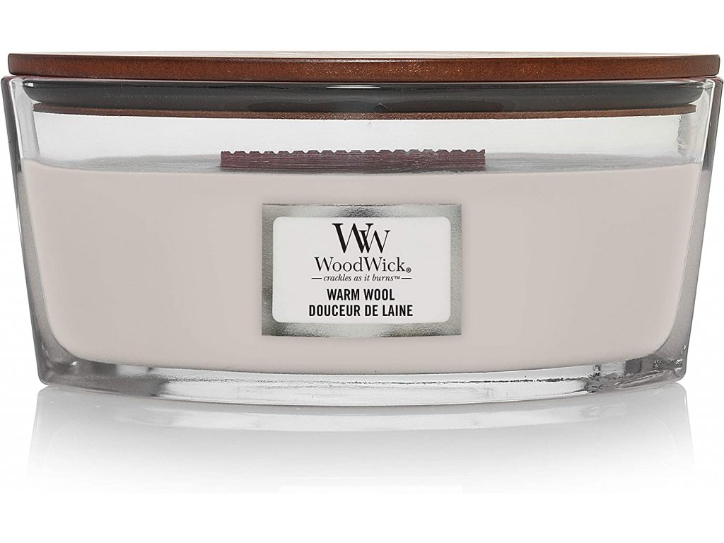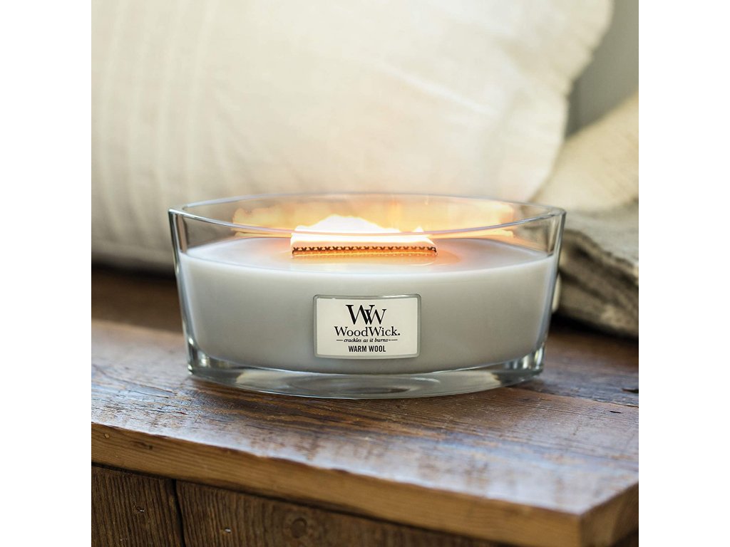 WoodWick vonná svíčka s dřevěným knotem Elipsa Warm Wool 453,6 g