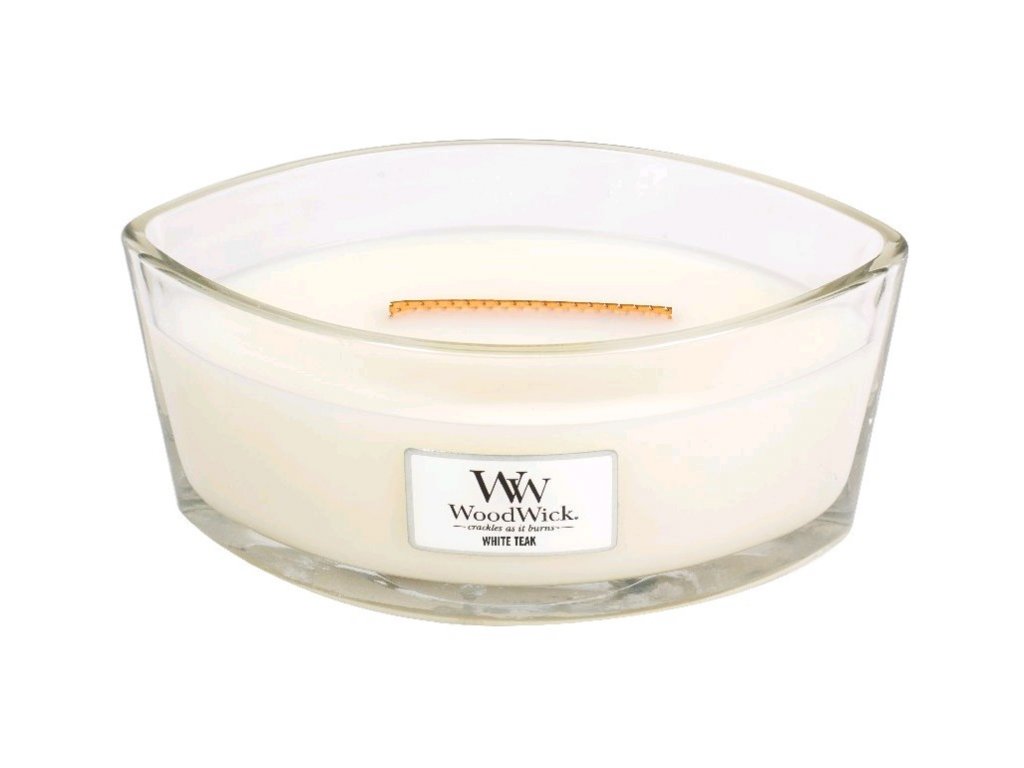 WoodWick vonná svíčka s dřevěným knotem Elipsa White Teak 453,6 g