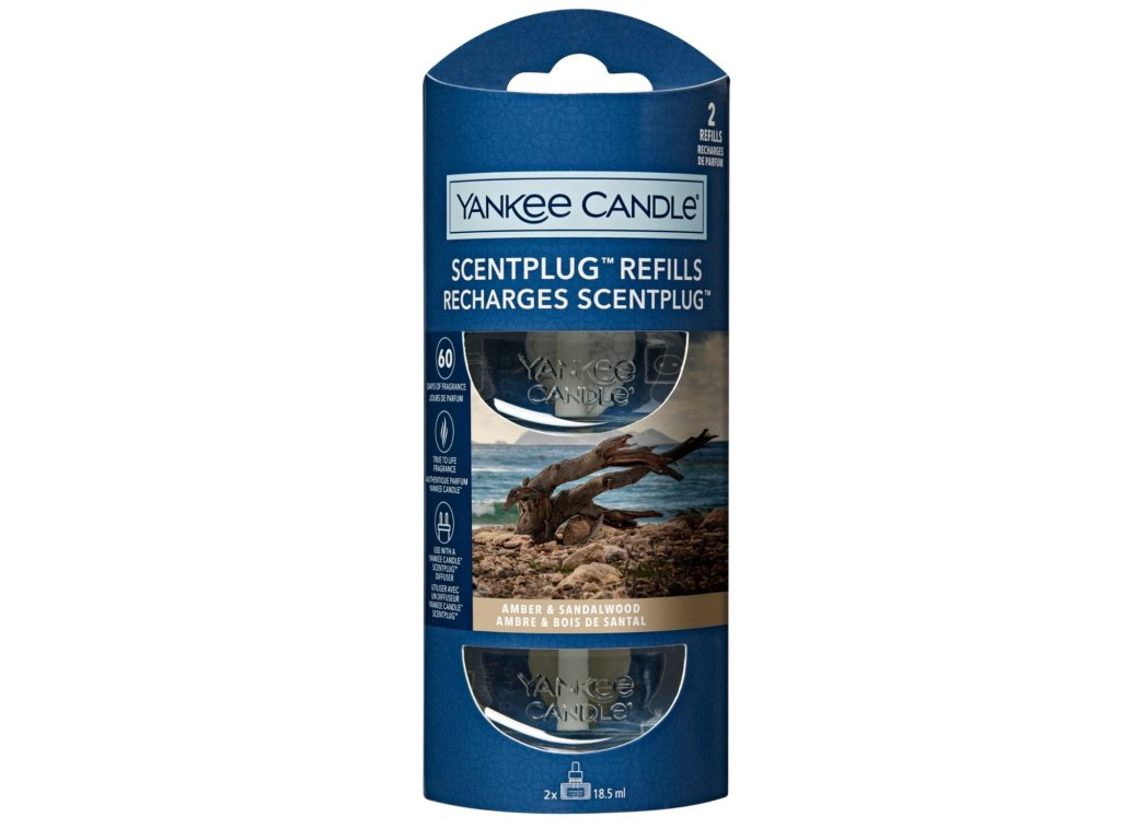 Dvojbalení náplní do elektrického difuzéru Yankee Candle s vůní Amber & Sandalwood. Každá náplň vydrží až 30 dní.