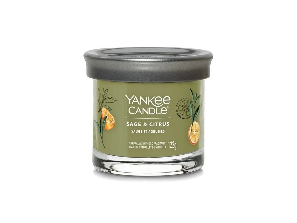Yankee Candle Signature 122 g – Sage & Citrus: osvěžující a harmonická vůně šalvěje, citrusových plodů a jemného dřeva. Ideální pro každodenní pohodu i relax. Elegantní svíčka se dvěma knoty.