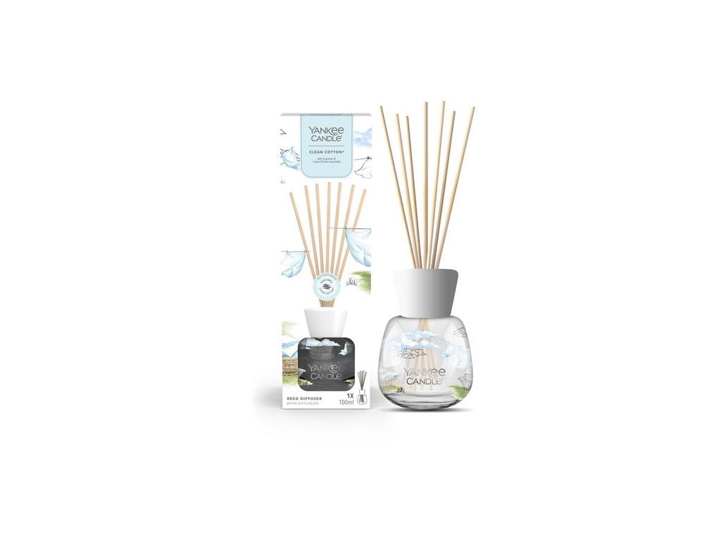 Yankee Candle Signature difuzér 100ml Clean Cotton - Svěží a čistá vůně čisté bavlny kombinovaná se zelenými tóny, bílými květy a špetkou citrónu. Doba provonění až 10 týdnů, bezpečně bez plamene.