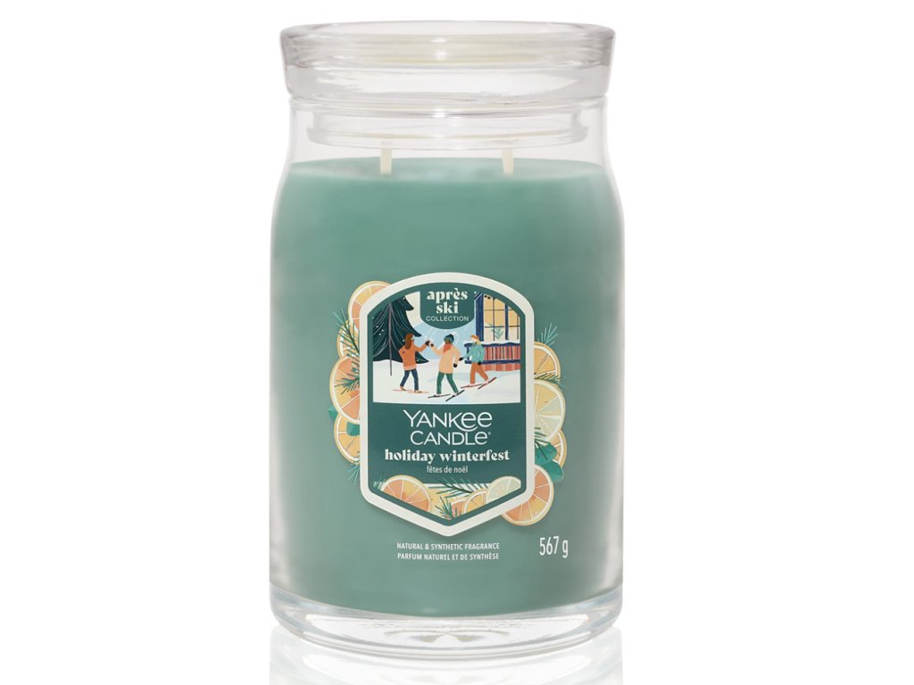 Vonná svíčka Yankee Candle Signature Holiday Winterfest přináší slavnostní vůni borovice, jehličí, koření a svěžích citrusů. Velká svíčka o hmotnosti 567 g dokonale provoní váš domov vánoční atmosférou a přinese teplo zimních svátků.