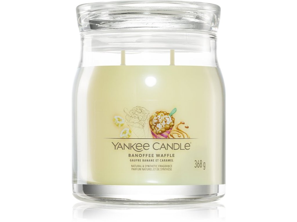 Vonná svíčka Yankee Candle Signature Banoffee Waffle představuje dokonalou kombinaci luxusu a příjemné atmosféry pro váš domov. Tato střední svíčka o objemu 368g je vybavena dvěma knoty pro optimální uvolňování vůně a rovnoměrné hoření.