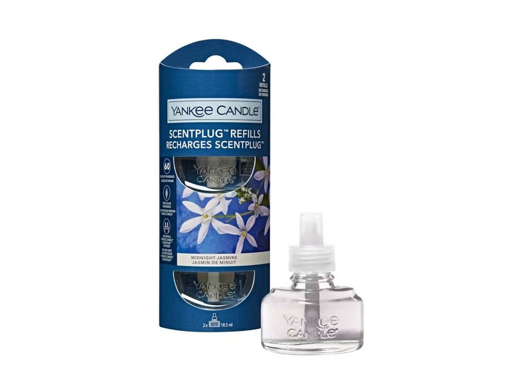 Dvojbalení náplní do elektrického difuzéru Yankee Candle s vůní Midnight Jasmine. Každá náplň vydrží až 30 dní.