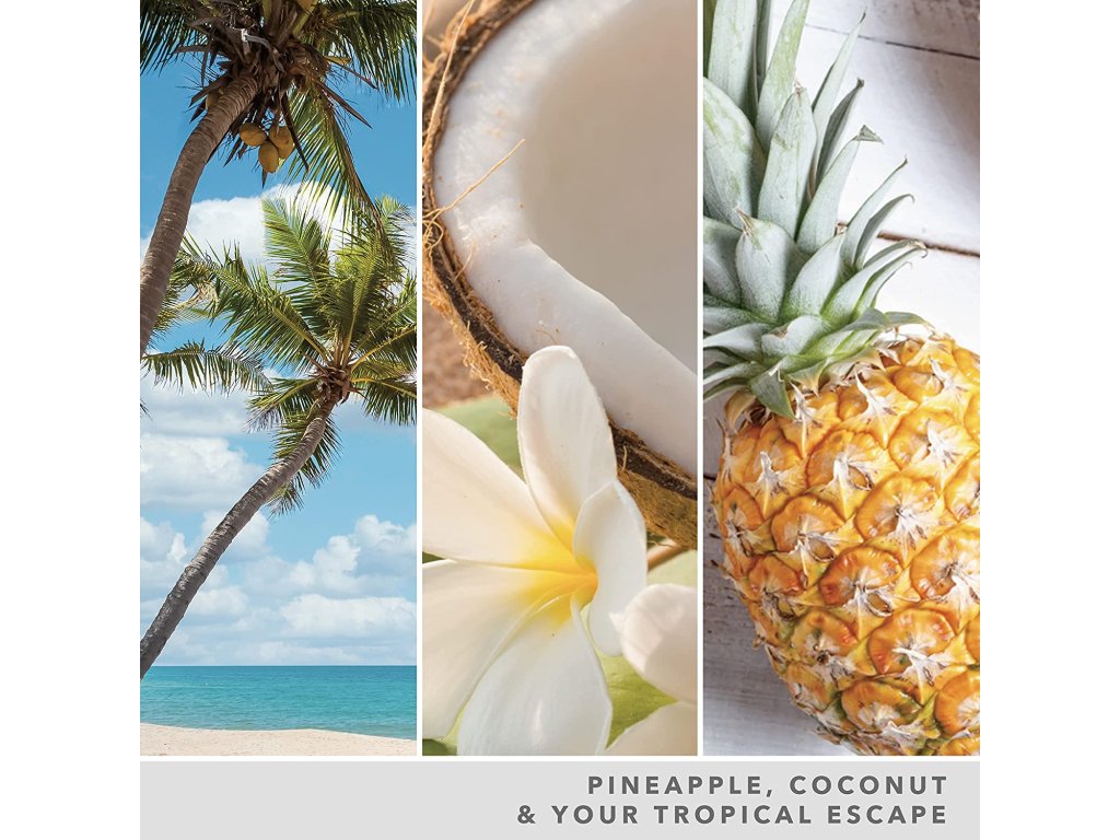 Pokud sníte o dokonalé tropické dovolené, je tato vůně určena právě vám. Teplé kokosové tóny smíchané s vůní sladkého ananasu a tahitské vanilky dělají z této vůně dokonalý způsob, jak se přenést do tropického ráje.