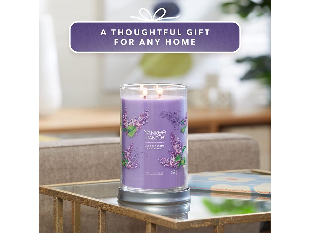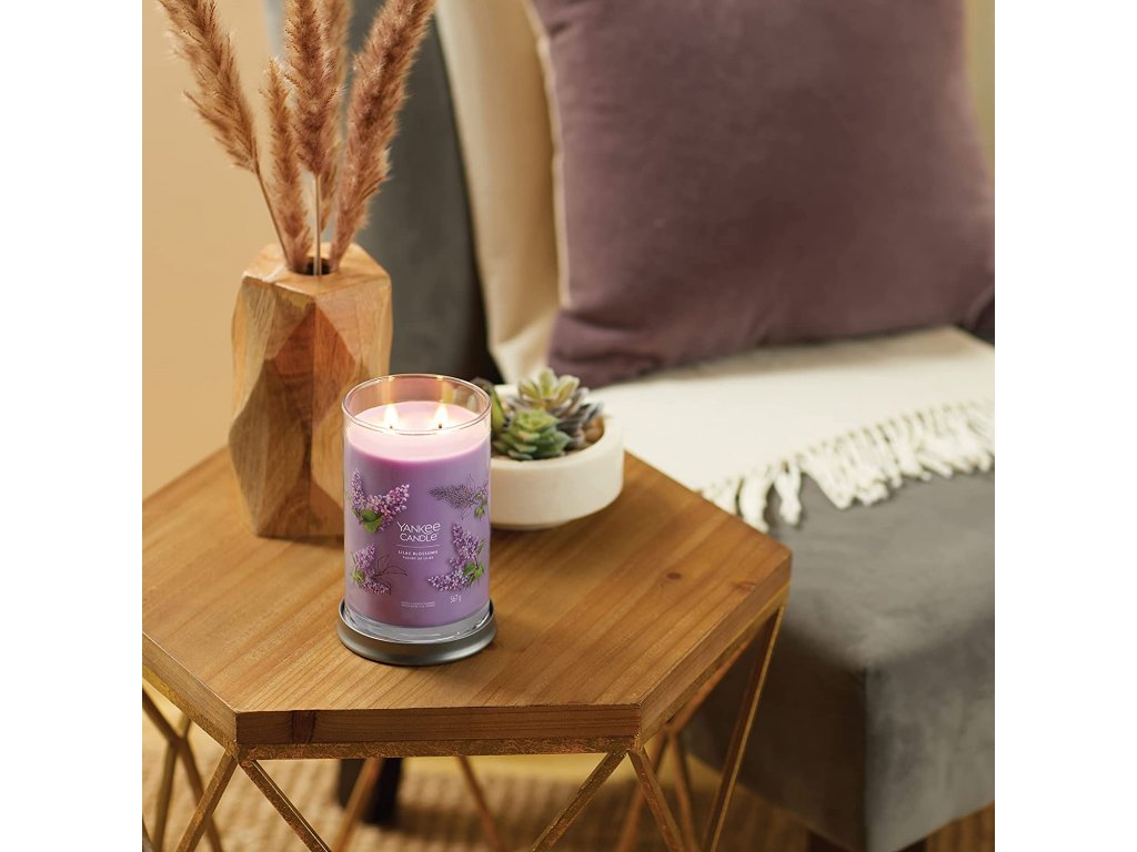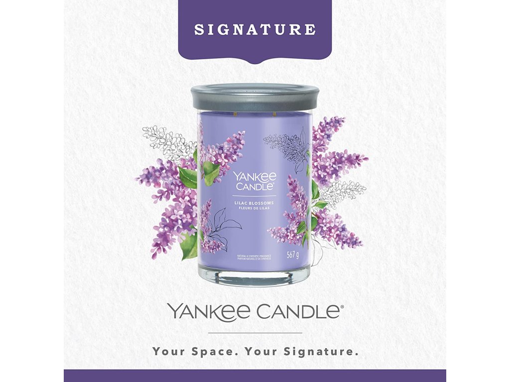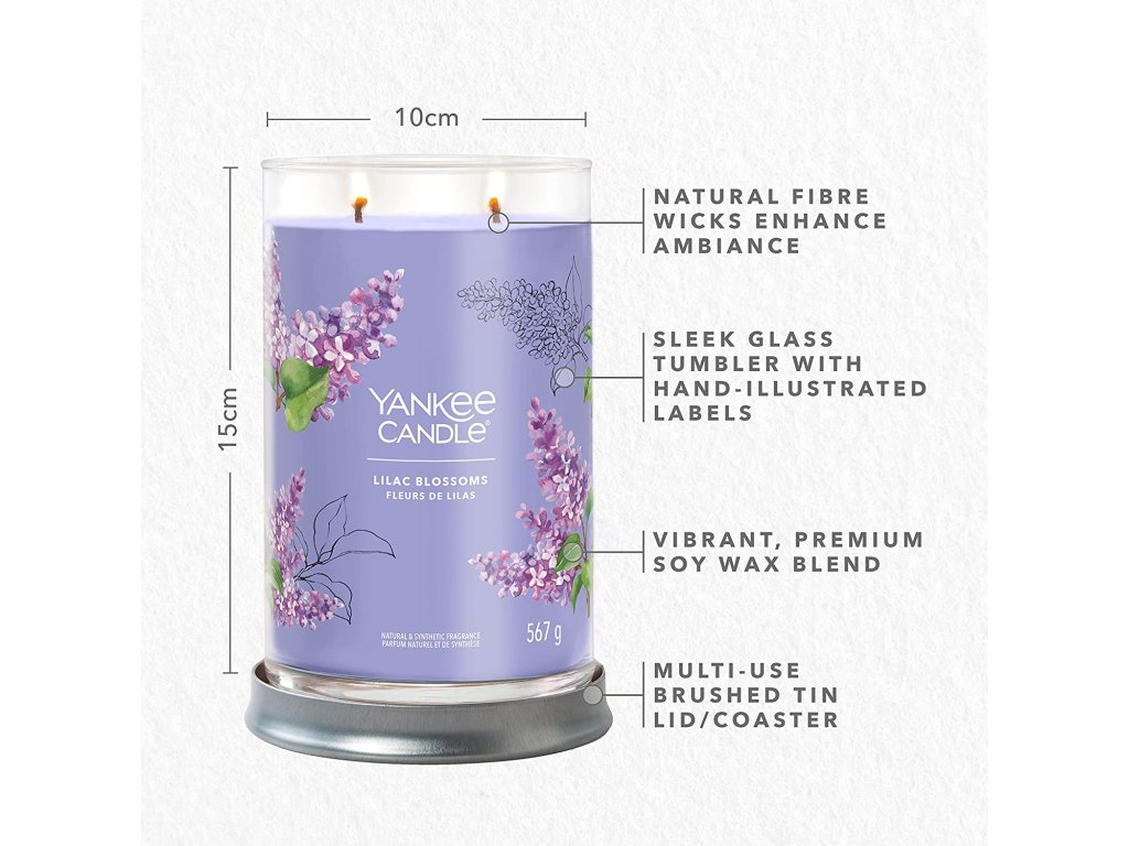 Stačí jedno přičichnutí a svíčku Yankee Candle Signature Tumbler Lilac Blossoms si budete chtít přidat do své sbírky. Bohatá vůně šeříku a levandule je dokonale vyvážená a vnese do každé místnosti ve vašem domě nádech kouzla. Od prvního okamžiku, kdy ji zapálíte, se přenesete na místo plné relaxace a klidu.