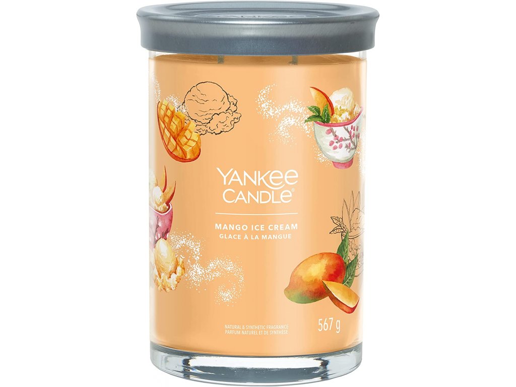 Svíčka Yankee Candle Signature Tumbler Mango Ice Cream je lahodnou pochoutkou pro váš nos a zaručeně vám navodí pocit, že si pochutnáváte na mangovo-vanilkovém dezertu. Ovocná vůně manga se mísí s krémovými tóny vanilky a vytváří jedinečnou lahodnou vůni, která naplní váš domov rozkoší.