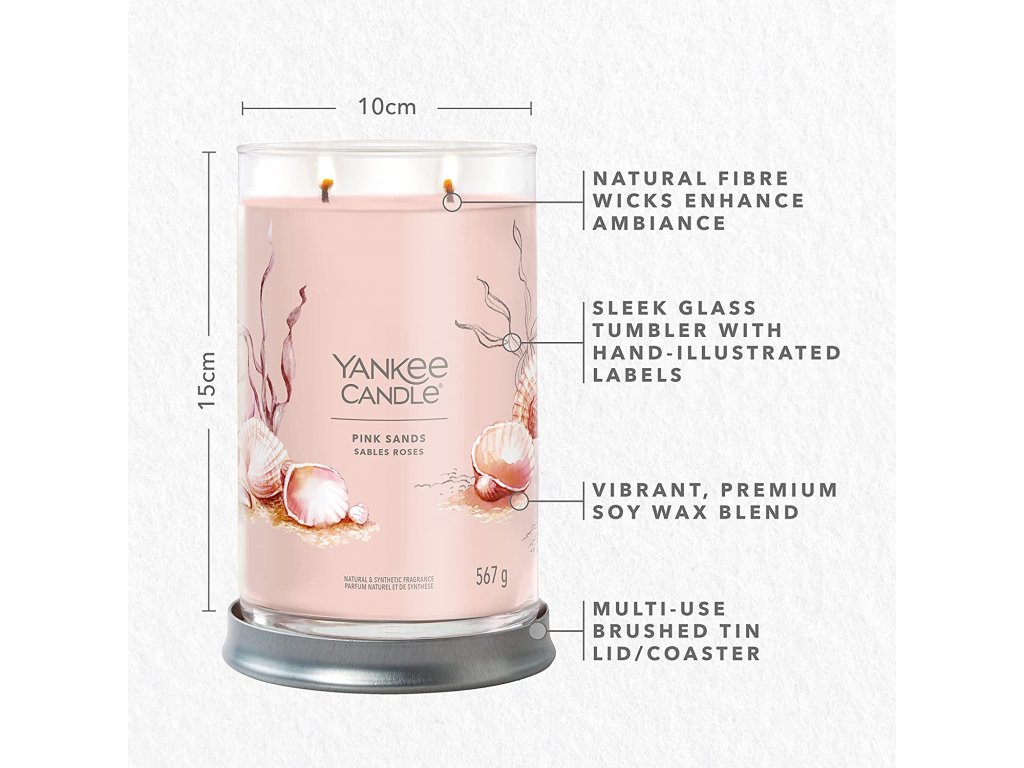 Nebe je modré a slunce svítí - máte prsty na nohou zabořené v písku, v ruce drink a nezbývá vám nic jiného než ztrácet čas. Cítíte, jak se vlny rozbíjejí o břeh, slyšíte skřehotání racků a vidíte, jak se v dálce pohupují lodě. Ale co kdybychom vám řekli, že stejný pocit odpočinku a dobrodružství můžete zažít i u sebe doma? Zní to bláznivě, ale je to pravda! Vše co potřebujete je svíčka Pink Sands - tropický útěk přímo ve vašem obývacím pokoji. Pink Sands je zářivá citrusová vůně s tóny sladkých květin a pikantní vanilky. Stačí jen otevřít nádobu, když potřebujete trochu osvěžení nebo dobrodružství, a nechat se unášet!