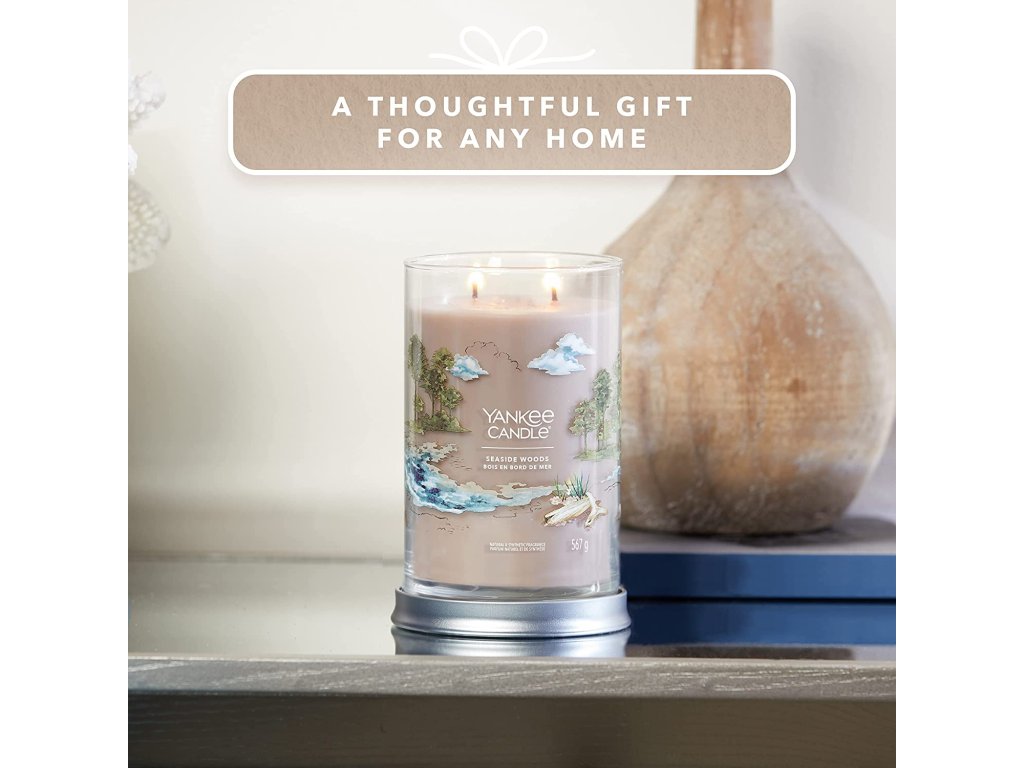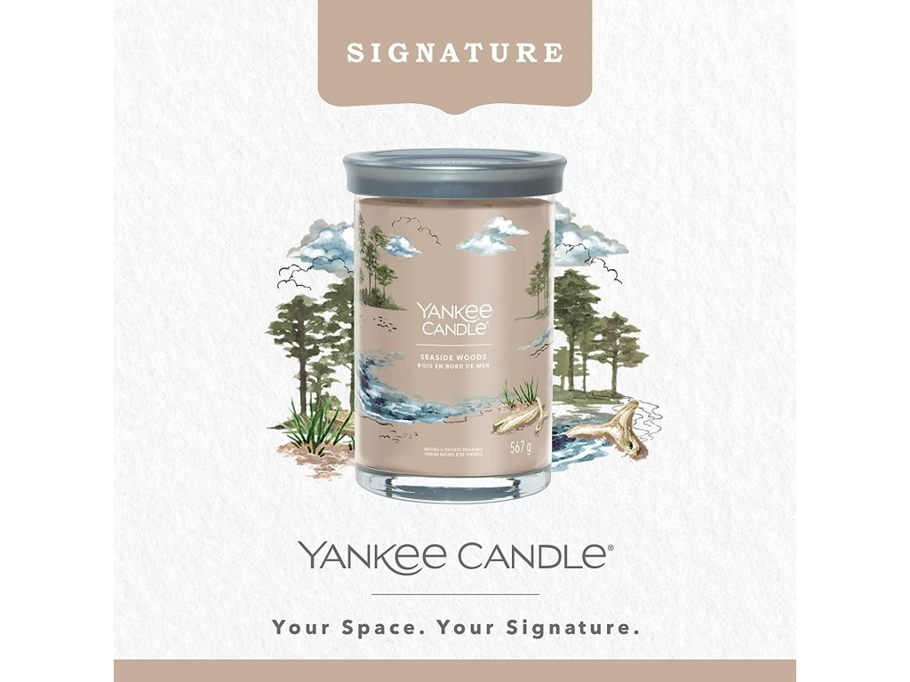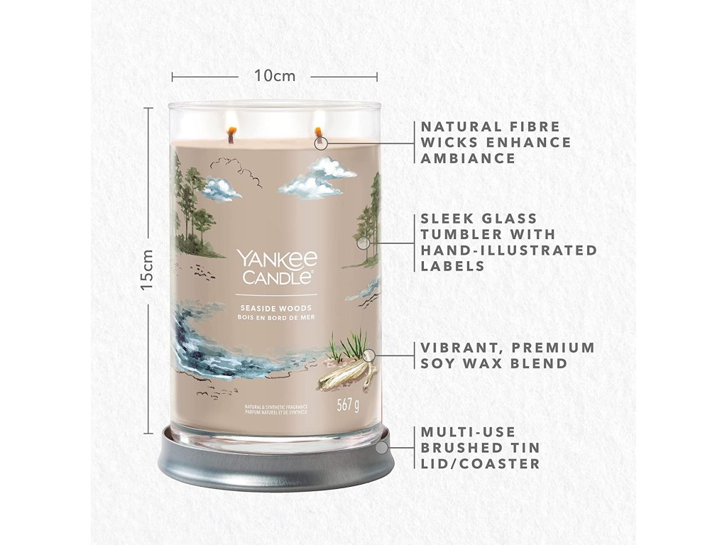 Naše svíčka Yankee Candle Signature Tumbler Seaside Woods je navržena tak, aby vás přenesla na místo relaxace a pohodlí, ať už jste kdekoli. Je to dokonalý způsob, jak přidat trochu pobřežní atmosféry do jakékoli místnosti ve vaší domácnosti nebo kanceláři! Vůně pláže je mocná věc. Vyvolává vzpomínky na léto, líné dny na písku a slaný mořský vzduch. Co říkáte na to, kdybyste mohli tuto vůni mít u sebe po celý rok?