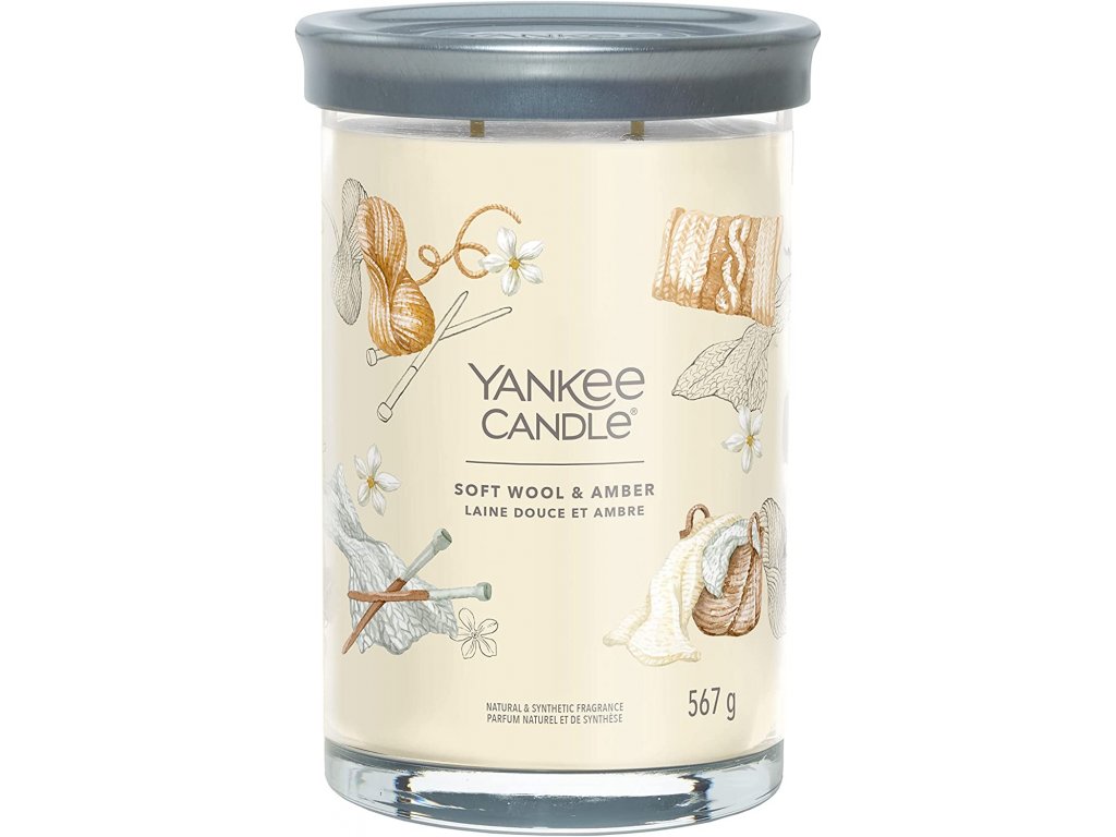 Yankee Candle vonná svíčka Tumbler ve skle velká Soft Wool & Amber 567g