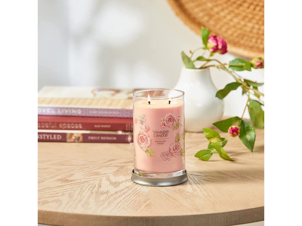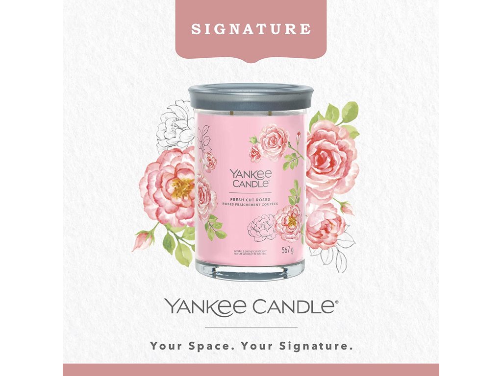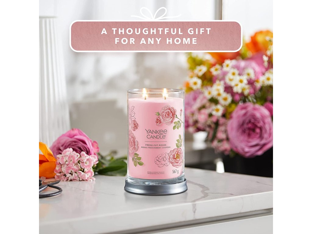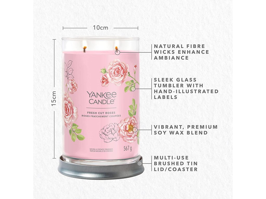 Nádherná a omamná kompozice čerstvě nařezaných růží z anglické zahrady. Představte si procházku růžovým polem za teplého letního dne. Vzduch naplňuje sladká vůně květů a vy jste obklopeni zářivými odstíny růžové, červené, žluté a bílé. Přesně tak voní naše svíčka Yankee Candle Signature Tumbler Fresh Cut Roses. Je ideální pro každého, kdo miluje vůni růží! Ať už chcete doplnit výzdobu svého domova něčím výjimečným, nebo chcete sobě či někomu jinému dopřát luxusní zážitek.