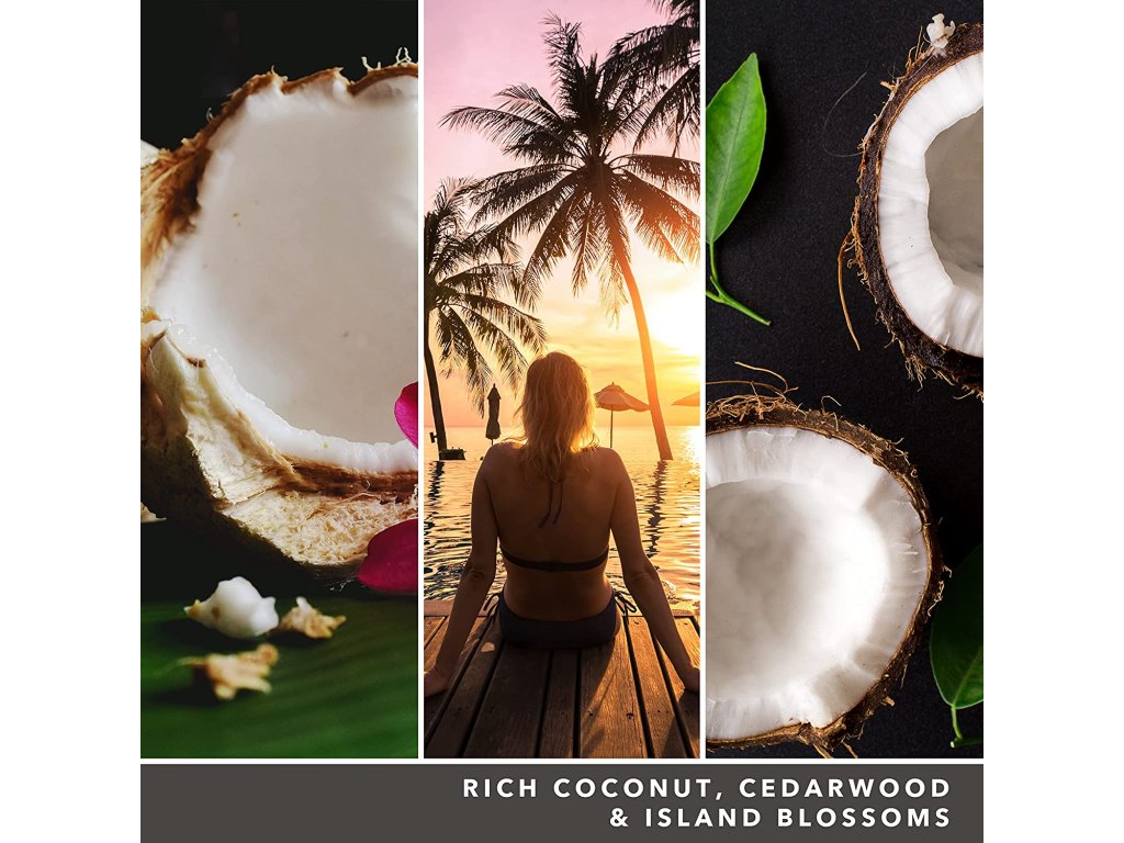 Pokud hledáte dovolenou, která je bohatá, sladká a plná možností, nehledejte nic jiného než Yankee Candle Signature Black Coconut. Je to vůně západu slunce v ráji. Cedr a ostrovní květiny slibují večery luxusního klidu, zatímco kokos přináší příslib tropické dovolené přímo k vašemu nosu.