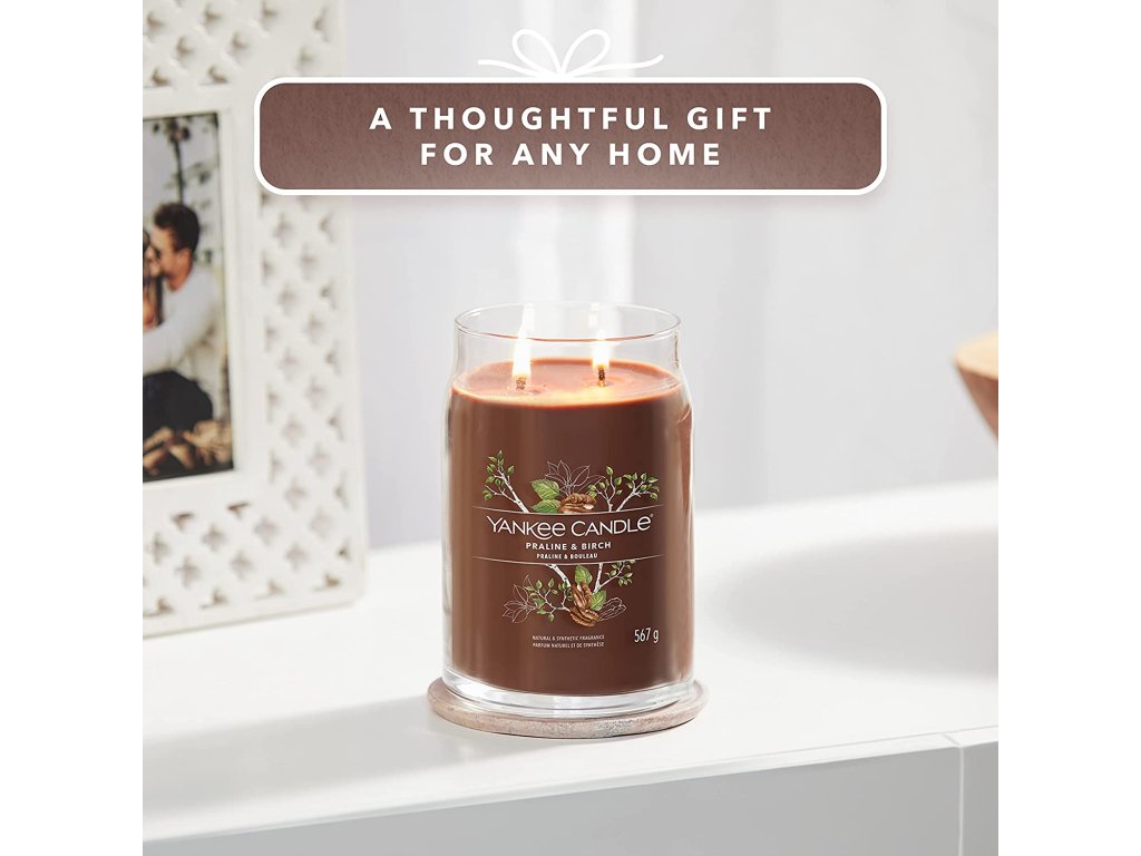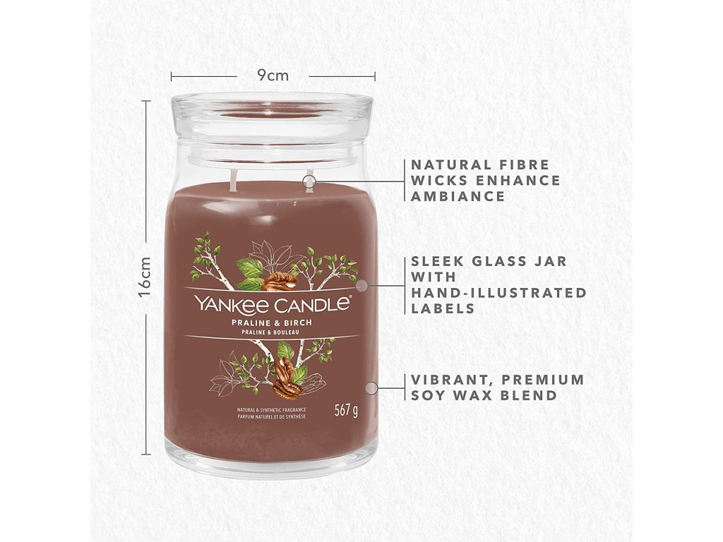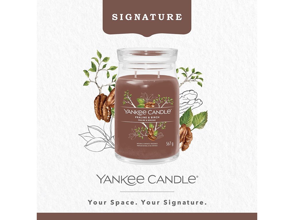 Yankee Candle vonná svíčka Signature ve skle velká Praline & Birch 567g