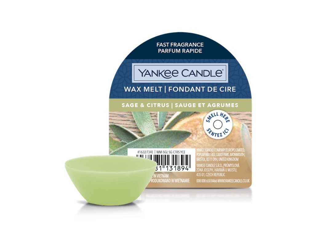 Vonný vosk Yankee Candle Sage & Citrus je vhodný pro všechny milovníky aroma lamp. Jednoduše ji umístěte na horní část aromalampy a do spodní části vložte zapálenou čajovou svíčku. Vonný vosk se začne pomalu rozpouštět a kouzelná vůně postupně prostoupí váš pokoj. Milovníkům kreativních vůní doporučujeme kombinovat několik druhů vosků a vytvořit si tak vlastní originální vůni. Náš vonný vosk vám nabízí až 8 hodin skutečného potěšení z vůně.