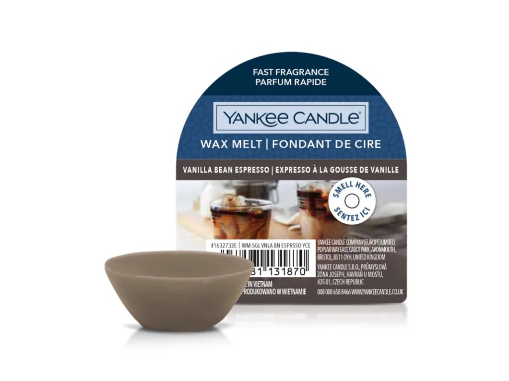 Yankee Candle vonný vosk Vanilla Bean Espresso 22g - Lahodná vůně vanilkového boby s nádechem kávy. Ideální pro aromalampy, uvolňuje vůni po dobu až 8 hodin.